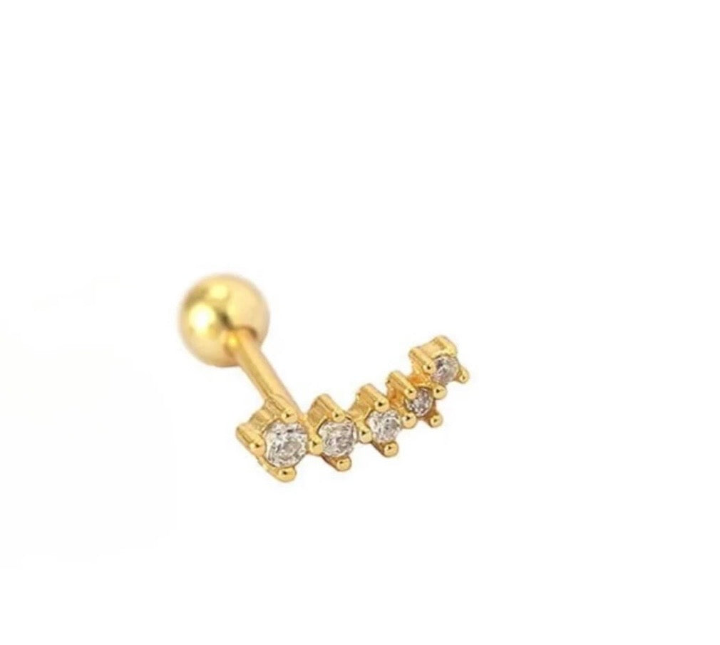 Adorn your ear with our Cubic Zirconia Crawler stud. Laden with shimmering, Cubic Zirconia's to make up an elegant curve to follow the natural curve of your upper helix.