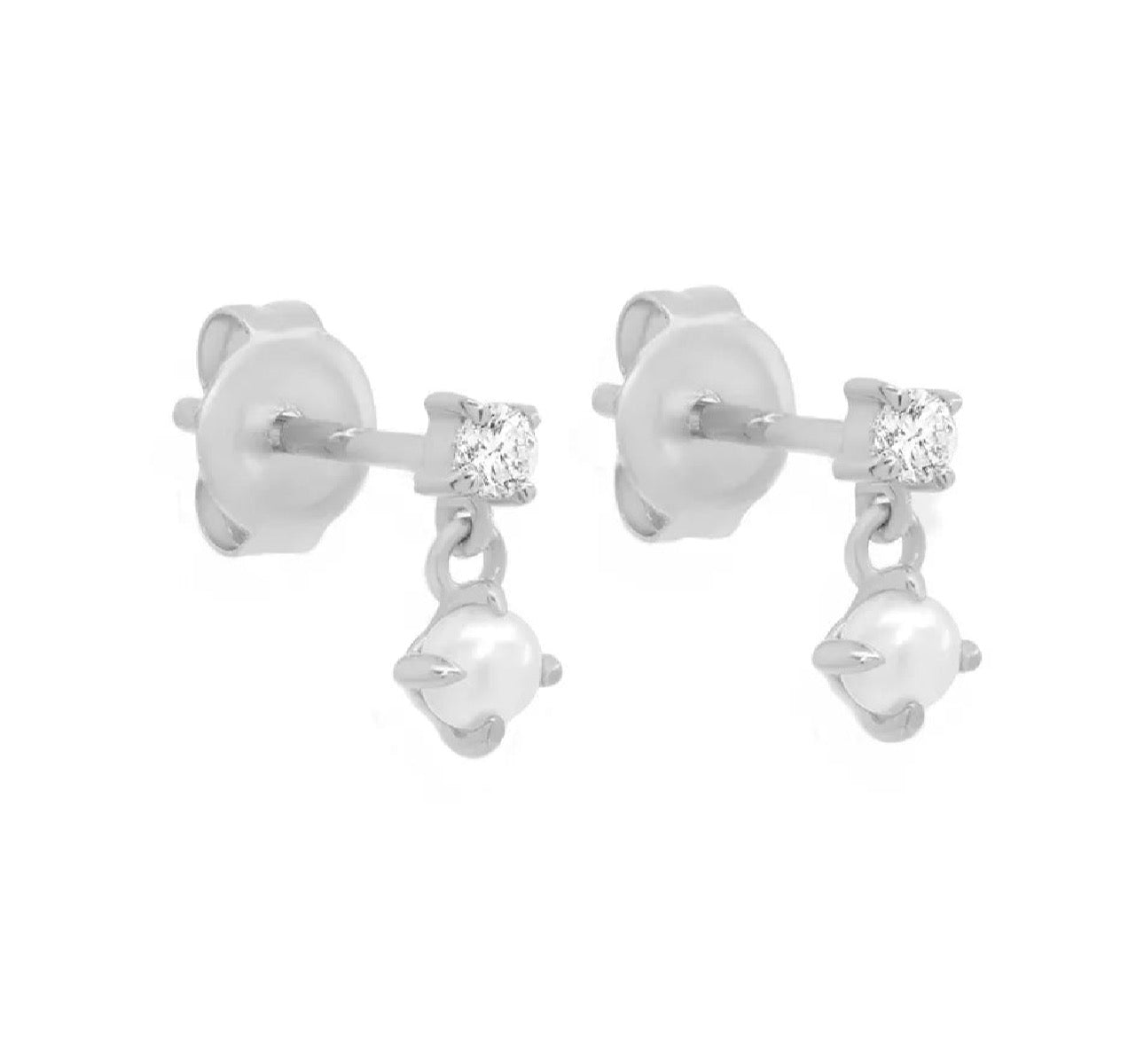 Transform your earring collection with these daring freshwater pearl studs, adorned with shimmering zirconia drops. Dare to wear them alone for a dainty yet captivating style!