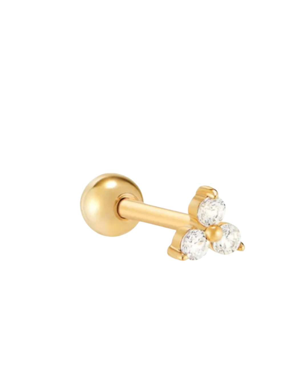 This crystal trio earring is the perfect crystal helix/ cartilage barbell earring. This unique piece may be tiny in size, but the three sparkling cubic zirconia's can make a statement and draw attention to your cute piercing