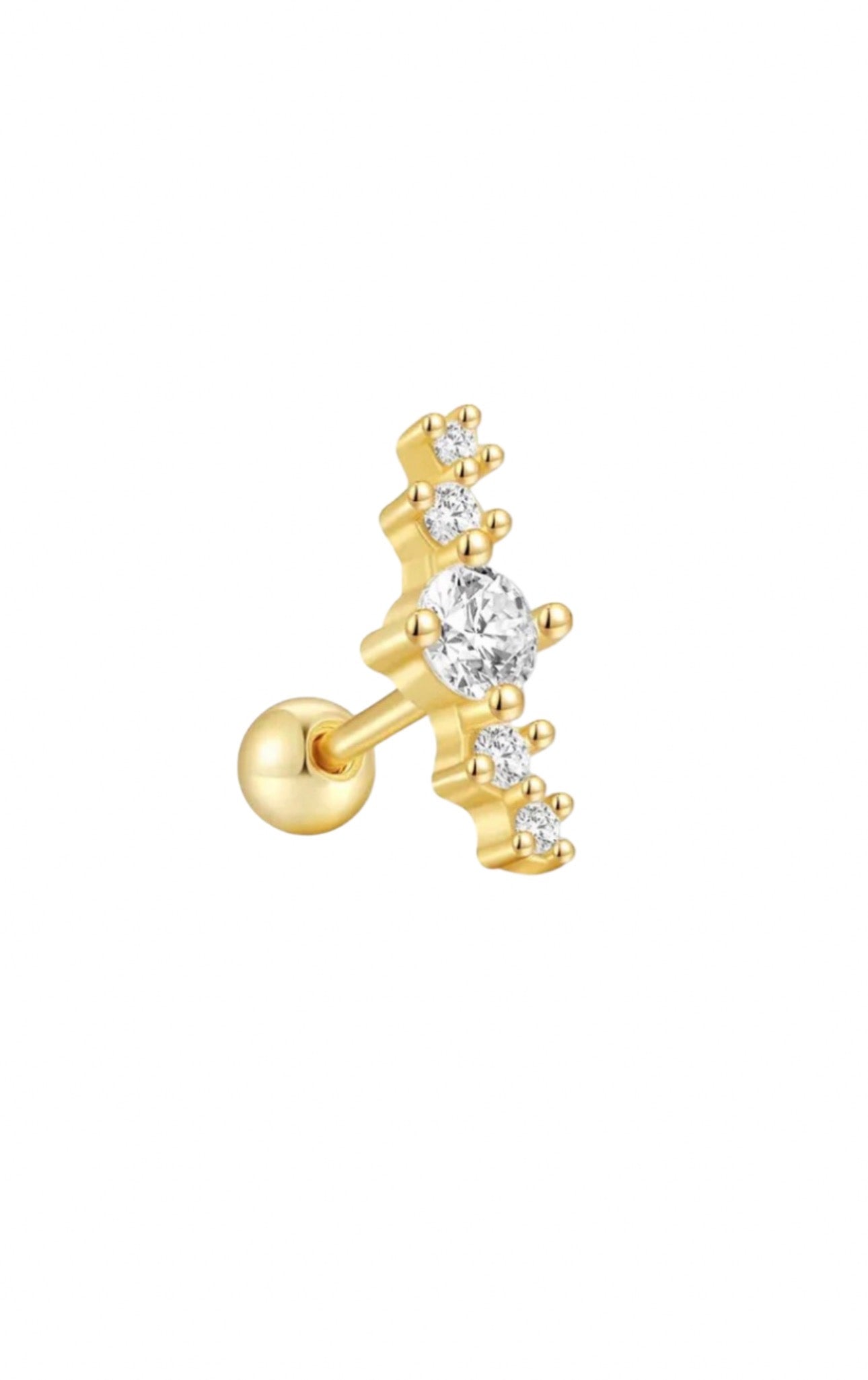 A striking barbell stud featuring one large cubic zirconia stone at the centre, flanked by two smaller stones on either side. This elegant design offers dimensional sparkle and a modern aesthetic perfect for ear piercings. The cubic zirconia stones catch light beautifully, creating a sophisticated look that works for both everyday wear and special occasions.