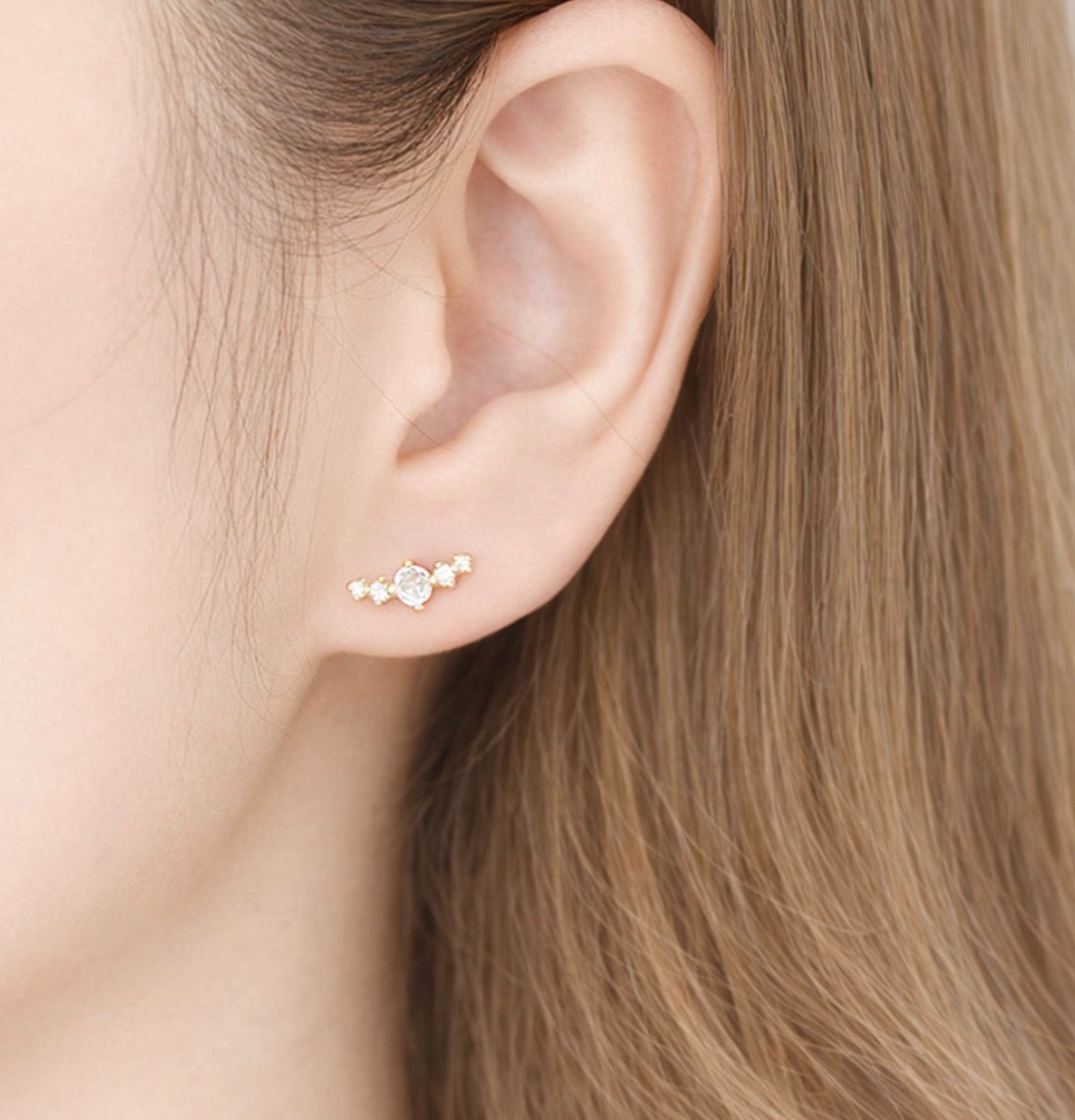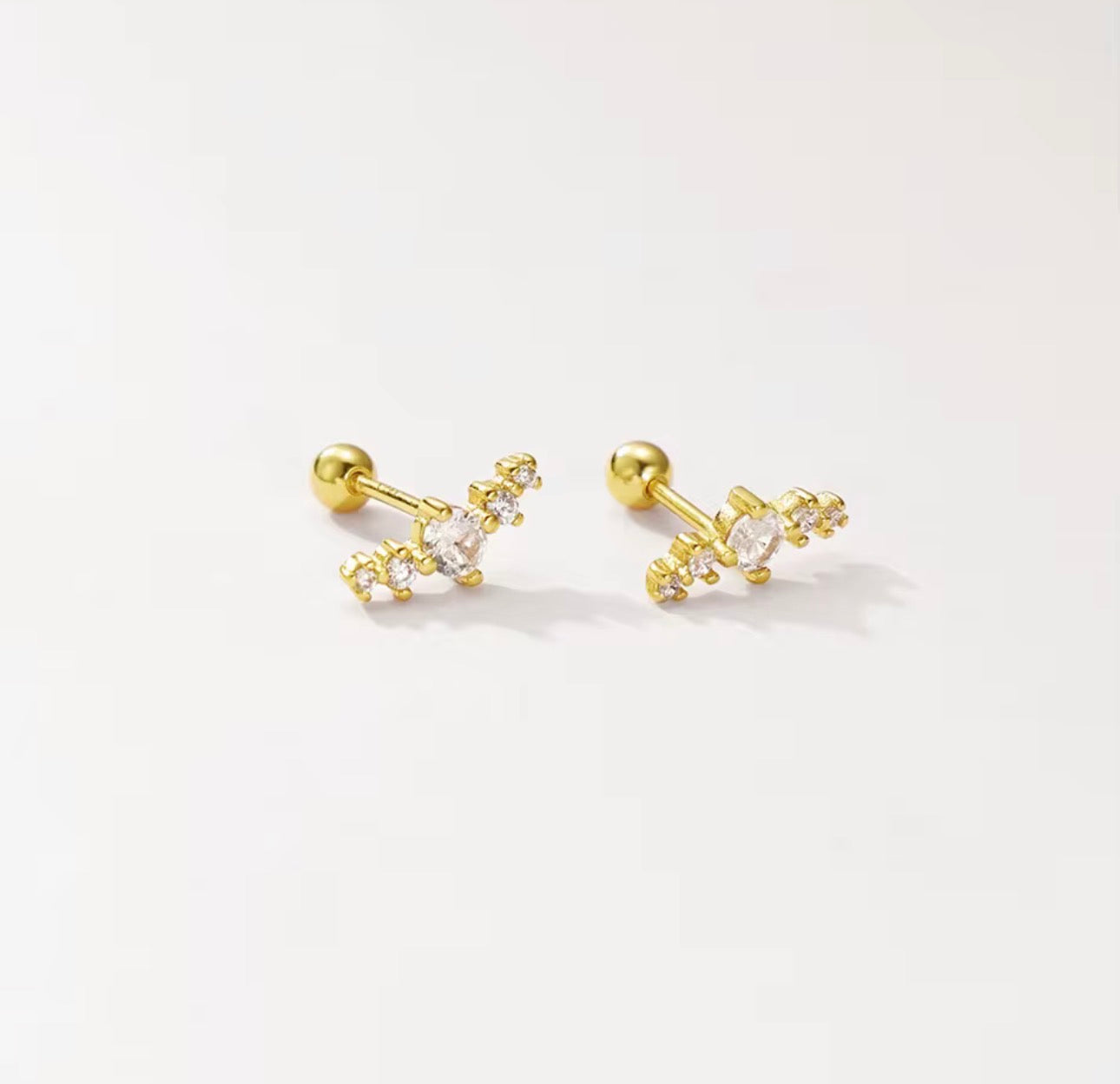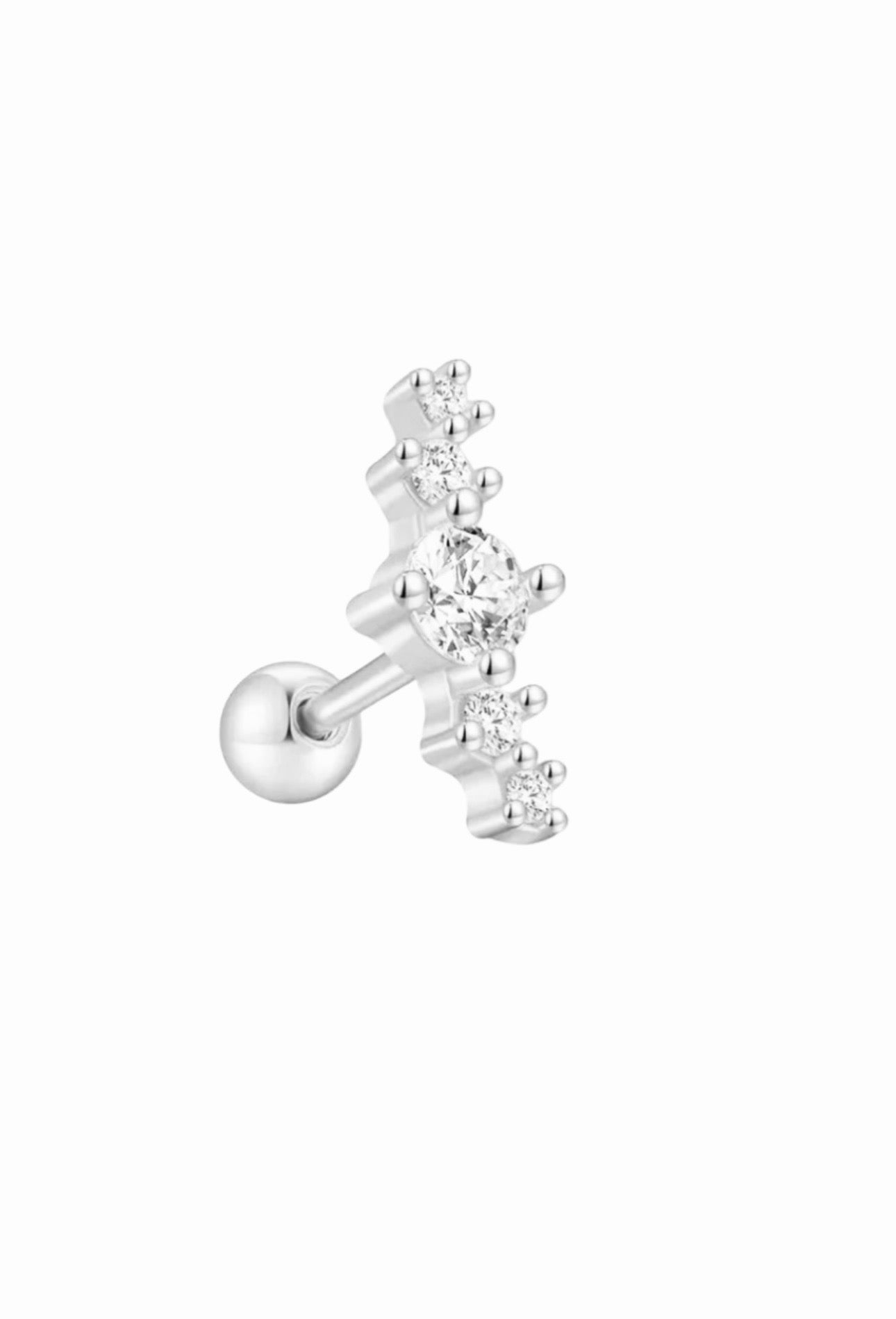 A striking barbell stud featuring one large cubic zirconia stone at the centre, flanked by two smaller stones on either side. This elegant design offers dimensional sparkle and a modern aesthetic perfect for ear piercings. The cubic zirconia stones catch light beautifully, creating a sophisticated look that works for both everyday wear and special occasions.
